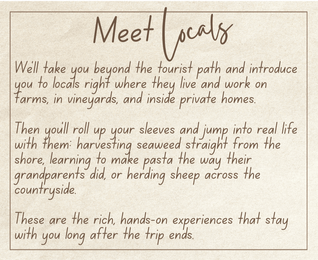 Our trips include expert guides who bring each destination to life with insider knowledge, cultural insights, and stories you won’t find in any guidebook. They help us navigate the language, understand the traditions, and experience the place the way locals do.