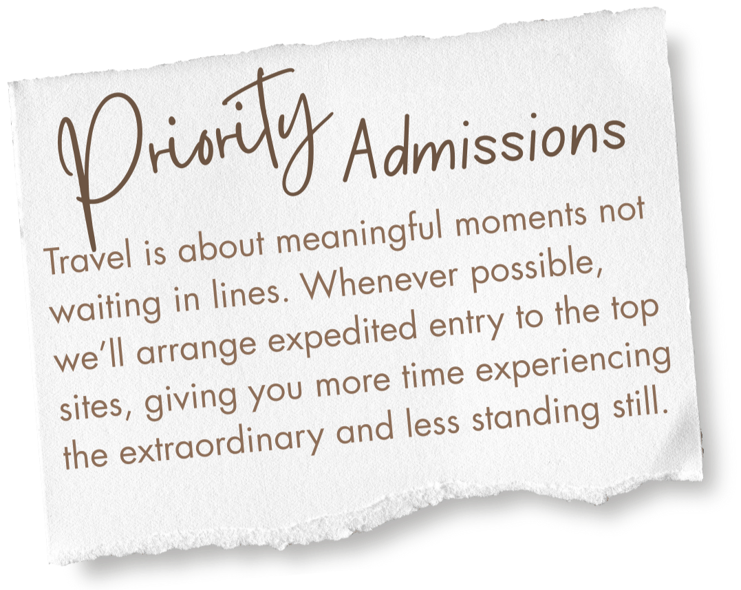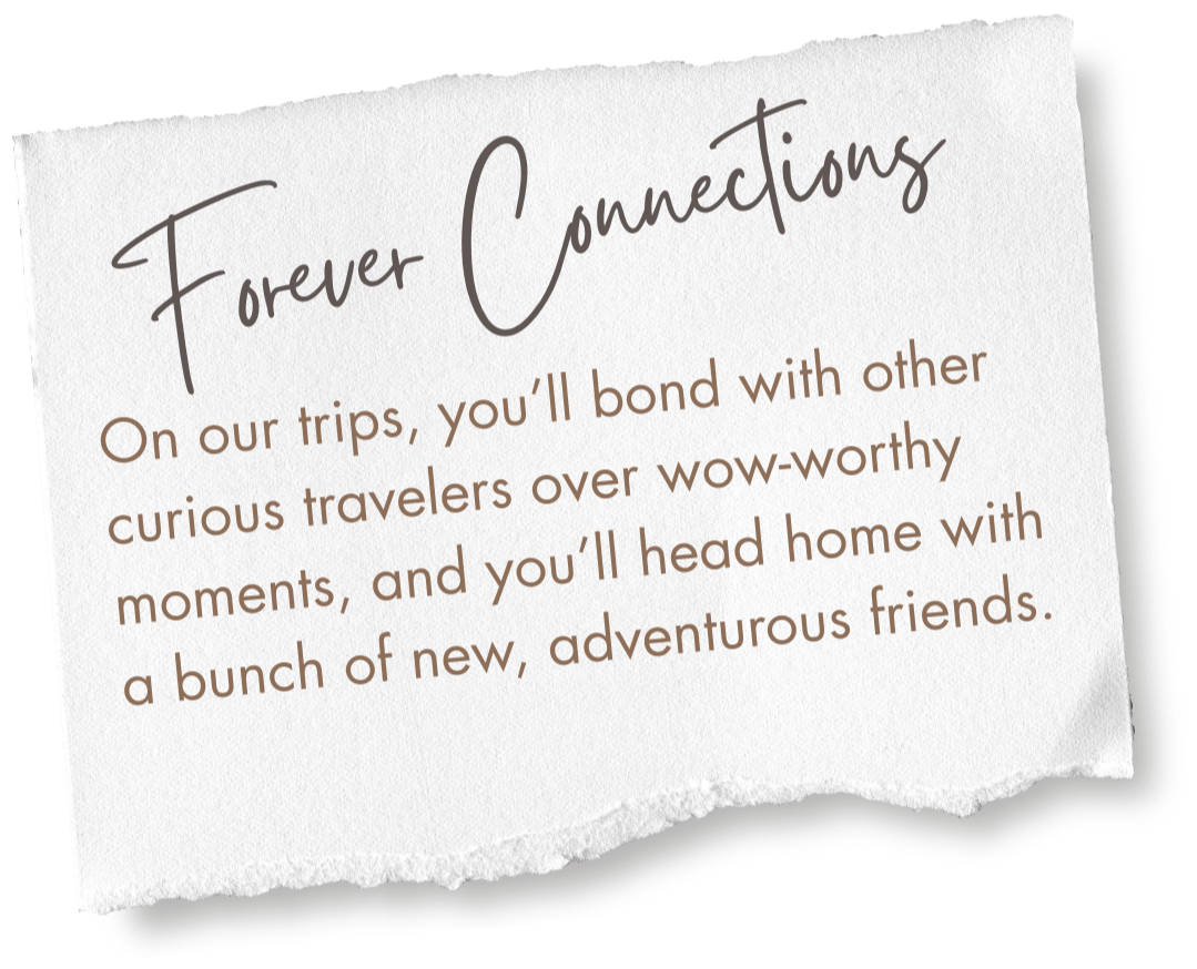 Travel is about making genuine connections, so we cap our groups at 38 to help you do just that. Our small groups discover must-see sights, share unforgettable meals, and soak in a new culture side by side. These aren’t just trips… they’re connections that turn into real friendships.
